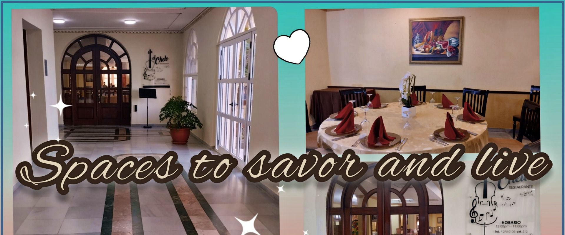 El piso de la instalación y del restaurante también merecen mención, con amplios pasillos enlozados en mármol que armonizan con el ambiente clásico y elegante del lugar, y de un tono que complementa a la perfección con el entorno.