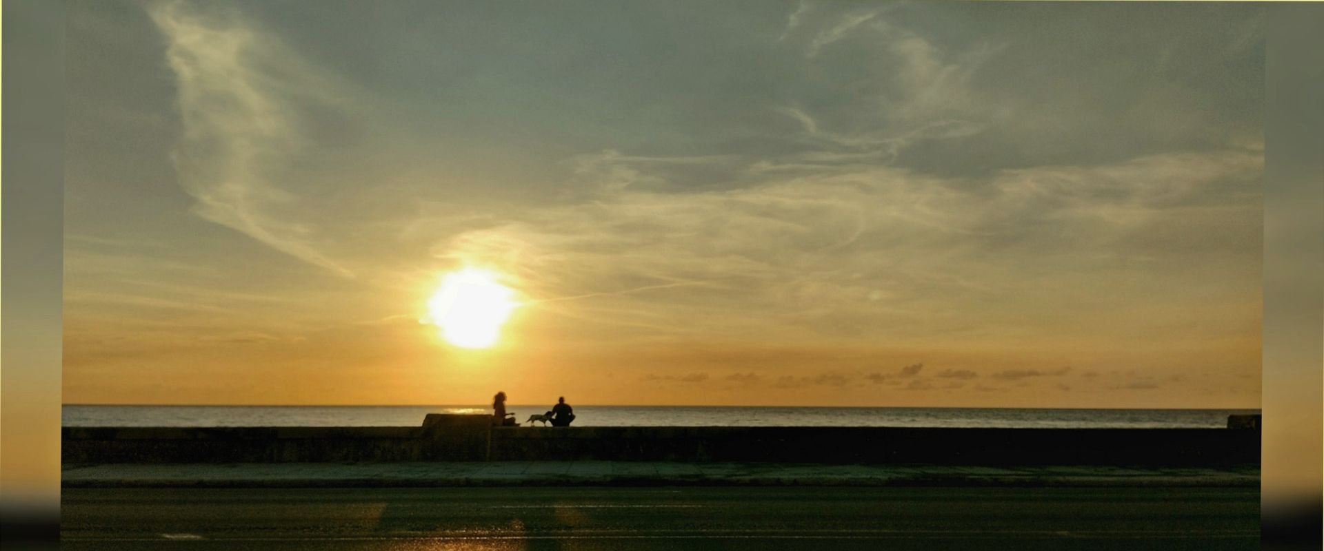 The most amazing thing about this magic hour is the beautiful view of the sky when the sunlight changes its hue and reflects off the sea. That view, accompanied by the soft sound of the waves crashing against the wall, makes me want to stay here for many hours.